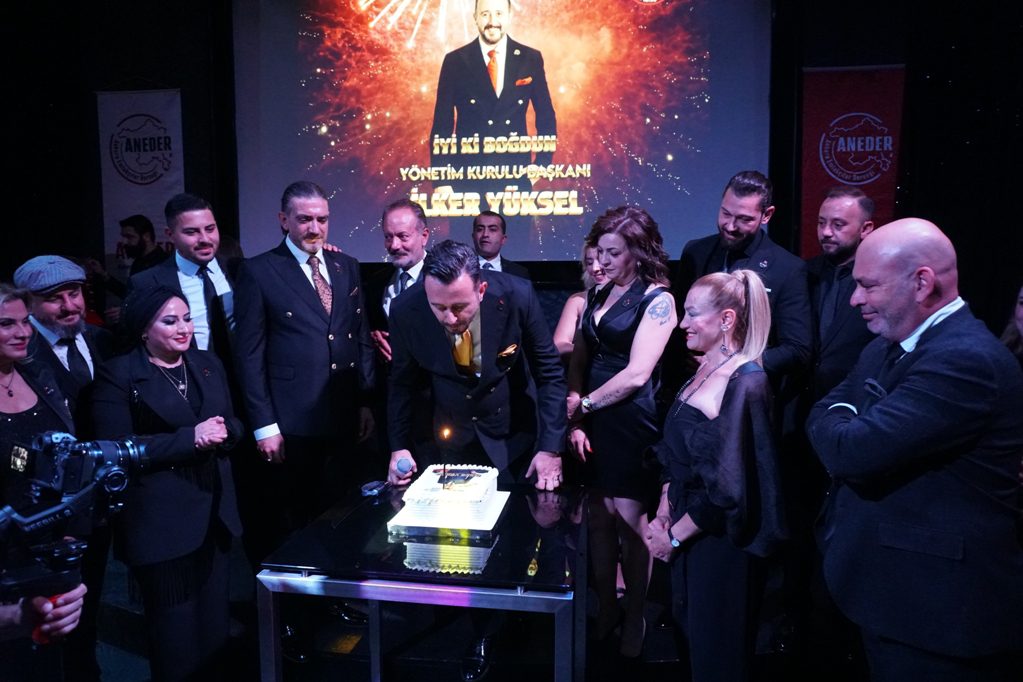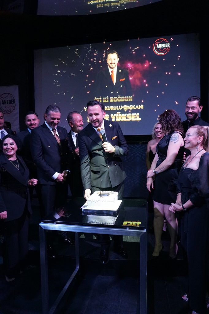 Eğlenceli gecede başkanın doğum günü nedeni ile pasta kesilirken ANADER çifte kutlamaya şahit oldu.
