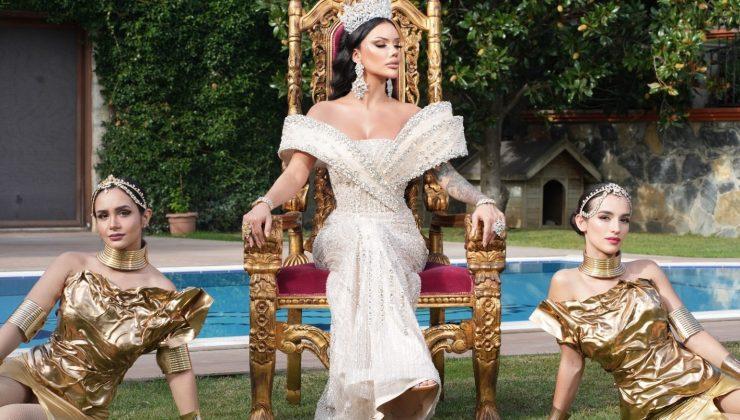 Altın detaylarla süslenmiş görkemli tahtında verdiği pozlar, sadece bir sanatçının değil, bir kraliçenin sahneye dönüşünü müjdeliyor.