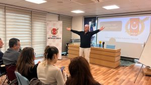 Eğitimde Murat Can Canbay; Türkçe’nin hem yazılı iletişimde hem de sözlü anlatımda doğru, etkili ve temiz biçimde kullanımının gazetecilik açısından taşıdığı hayati önemi ele aldı.